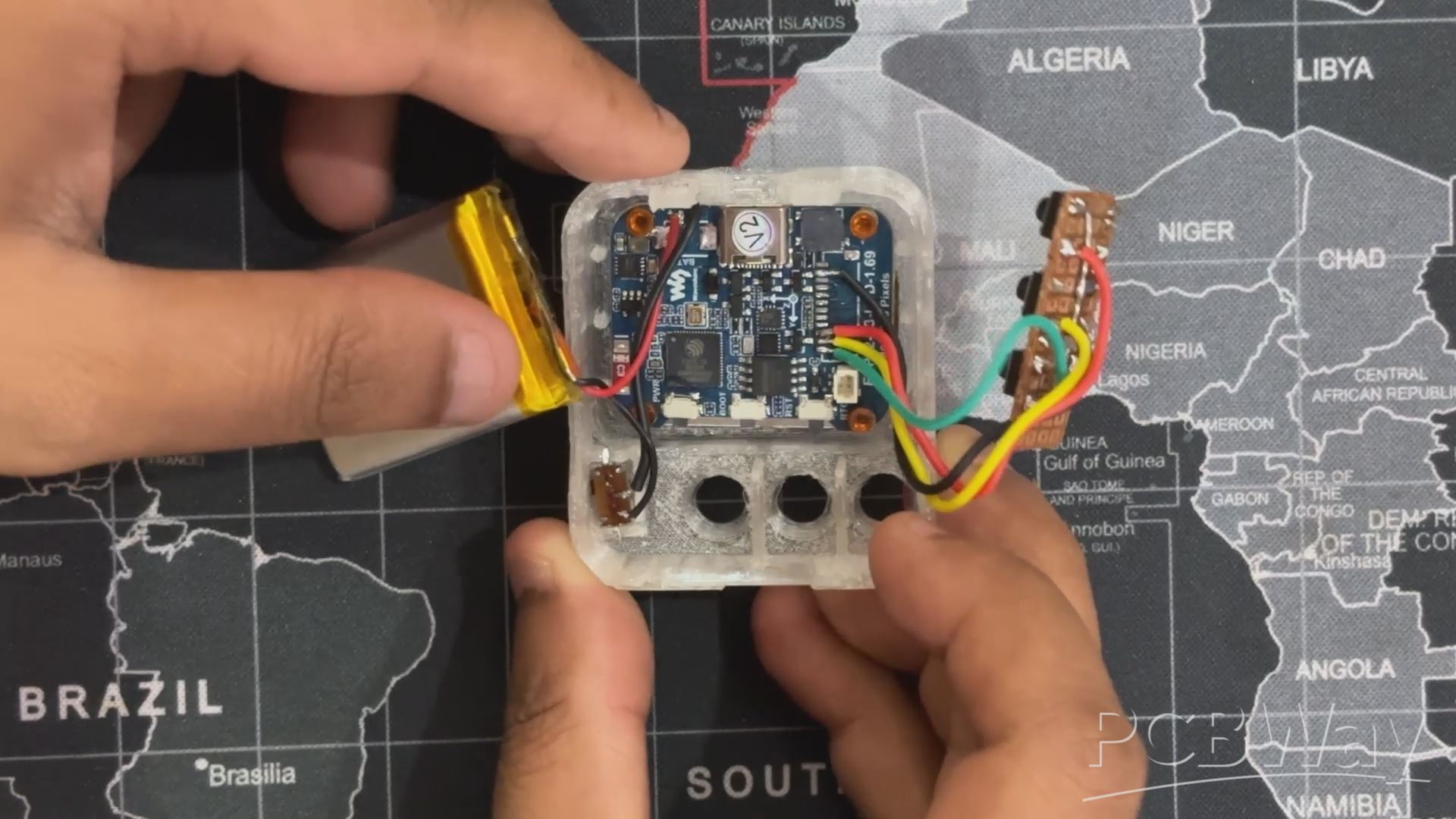 This tiny device fits comfortably in the palm of your hand. Housed in a custom-designed, 3D-printed enclosure, it’s powered by a 3.7V 2000mAh LiPo cell, making it fully portable and self-sufficient.