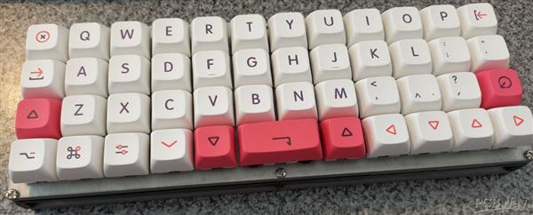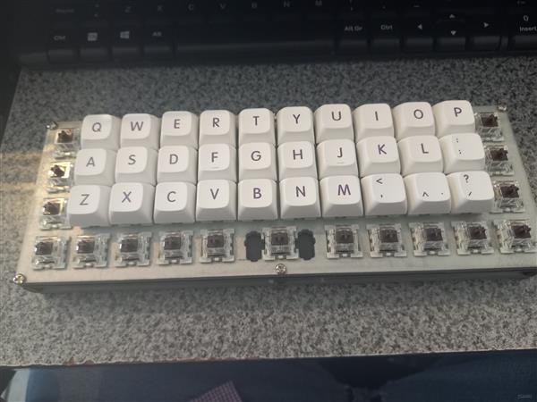 47 keys (Plank type) with the RP2040 in the Raspberry Pi Pico form, and KMK firmware. Sandwich case.