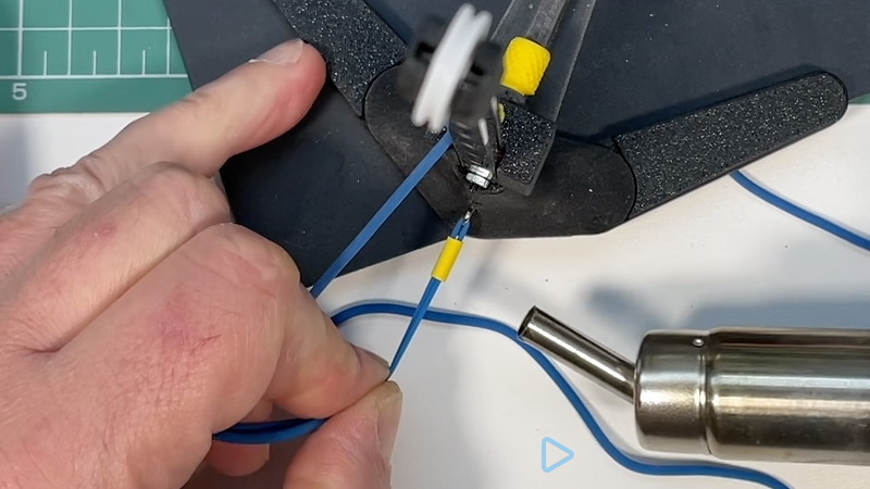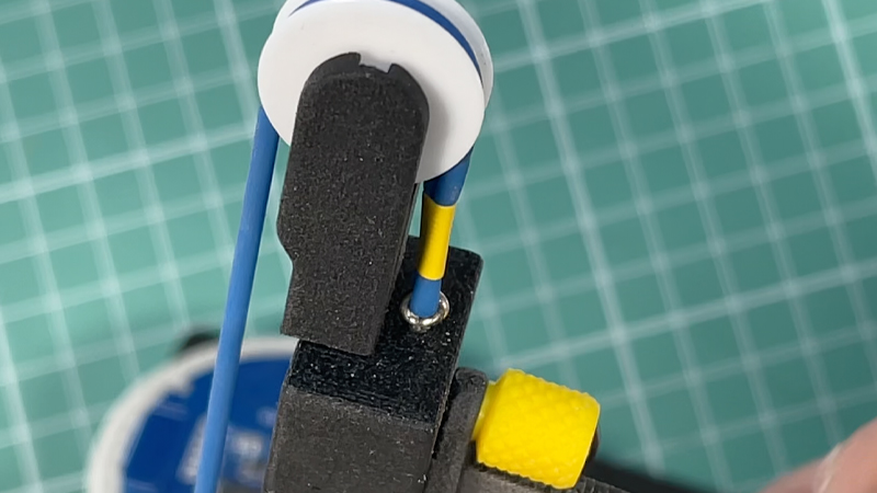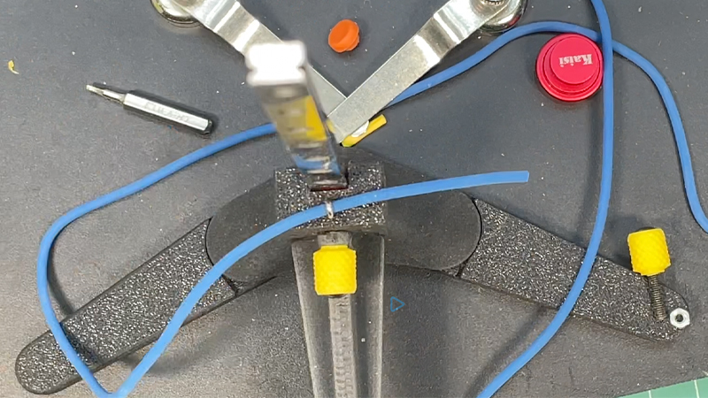 Instead of a traditional spring, I used a latex cord. It provides a smoother and more consistent lever return. The only challenge is securing it. I stretched the cord tightly and clamped it in a heat-shrink tube while heating it in a stretched state. It holds reliably and works effectively.