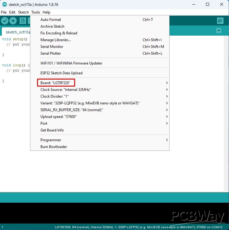 For support in Arduino IDE for LGT8F328P, we need to enter the given link (https://raw.githubusercontent.com/dbuezas/lgt8fx/master/package_lgt8fx_index.json) in File - Preferences - Additional Boards Manager, and then in Tools - Boards Manager we install this microcontroller.