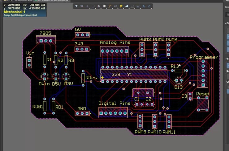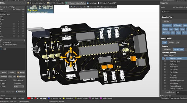 Once the circuit was finished, I started working on the PCB Layout. Using Altium designer, creating a PCB layout is really easy. We can simply arrange all the components inside the board, route the tracks and create a board layout and all these can be done within 10 minutes.