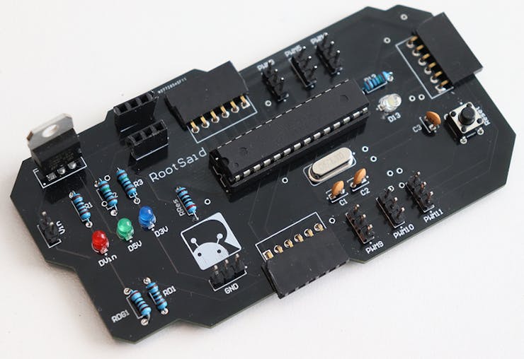 And we have some indicator LEDs that will help us to troubleshoot if anything goes wrong. This LED is connected to Pin 13 of the ATMega328.