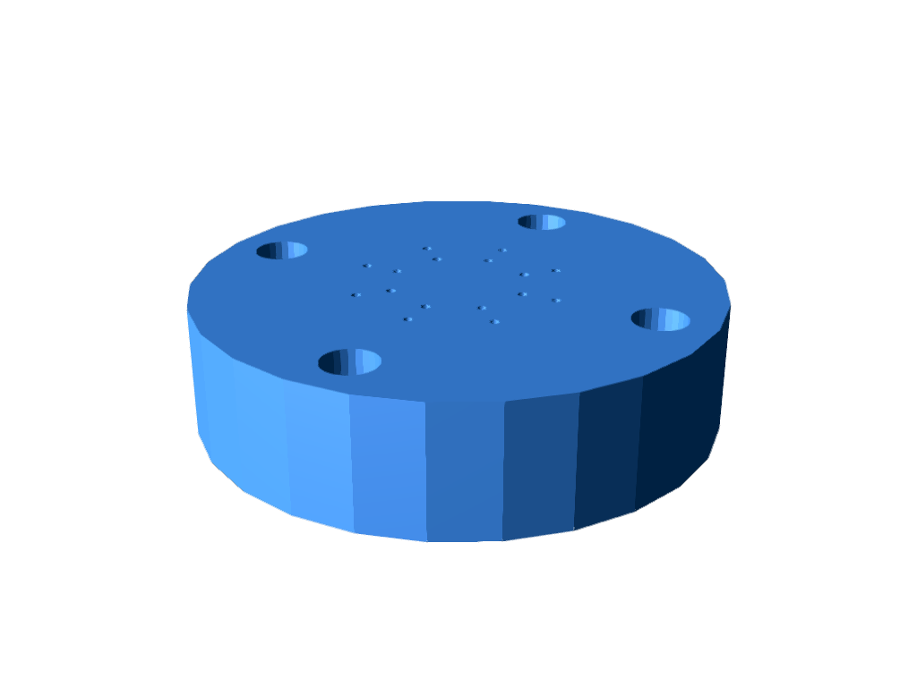 Pintle Mount: At the heart of the design is a centrally located, 5/16 - 18 UNC threaded hole. This is where the pintle post, a separate 3D-printed component, is screwed in. The pintle post itself will contain the oxidizer channel, directing it to the tip for mixing.