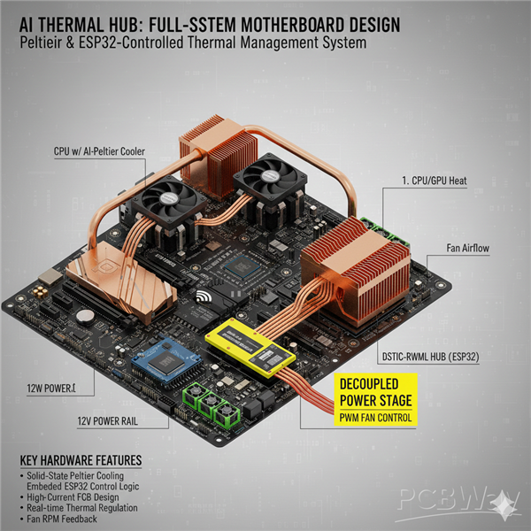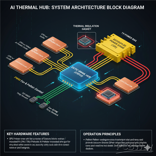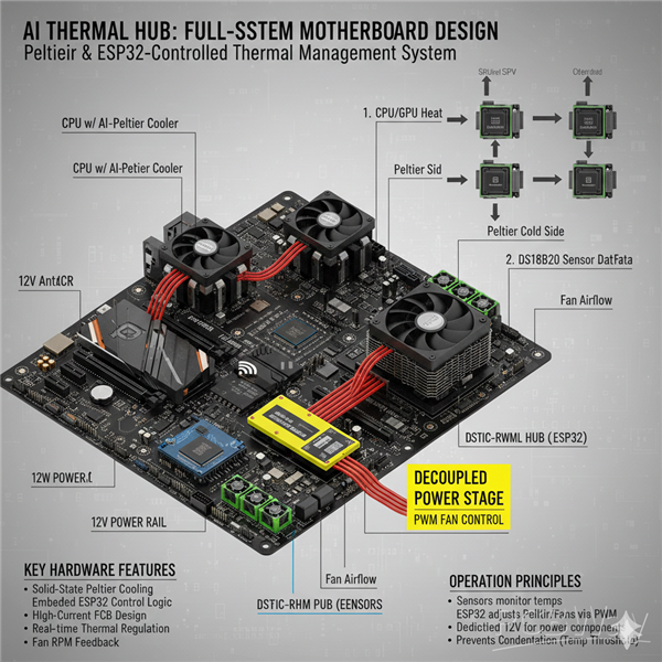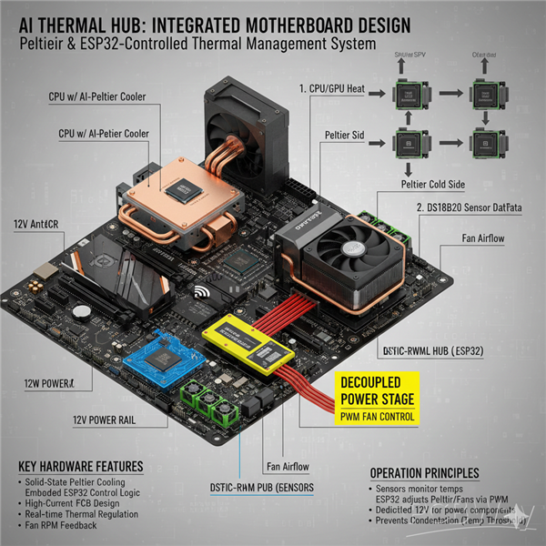 The system is built as an independent "AI Thermal Hub" that interfaces directly with the PC’s Power Supply Unit (PSU).