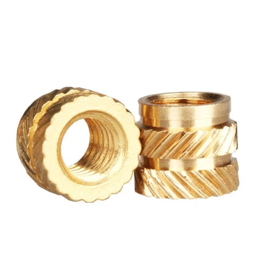 The nut must be inserted into the holes with the aid of heat. Generally, a soldering iron is used to heat the metallic region of the nuts and facilitate their connection with the holes in the cover. See the figure below.