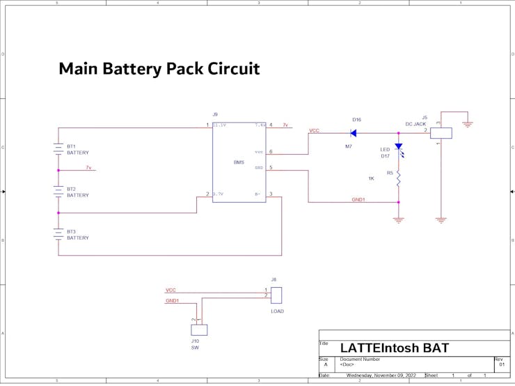 The project's design was really straightforward; after adding the BMS, we connected each Li-ion Cell Holder in series to the BMS in accordance with the wiring schematic.