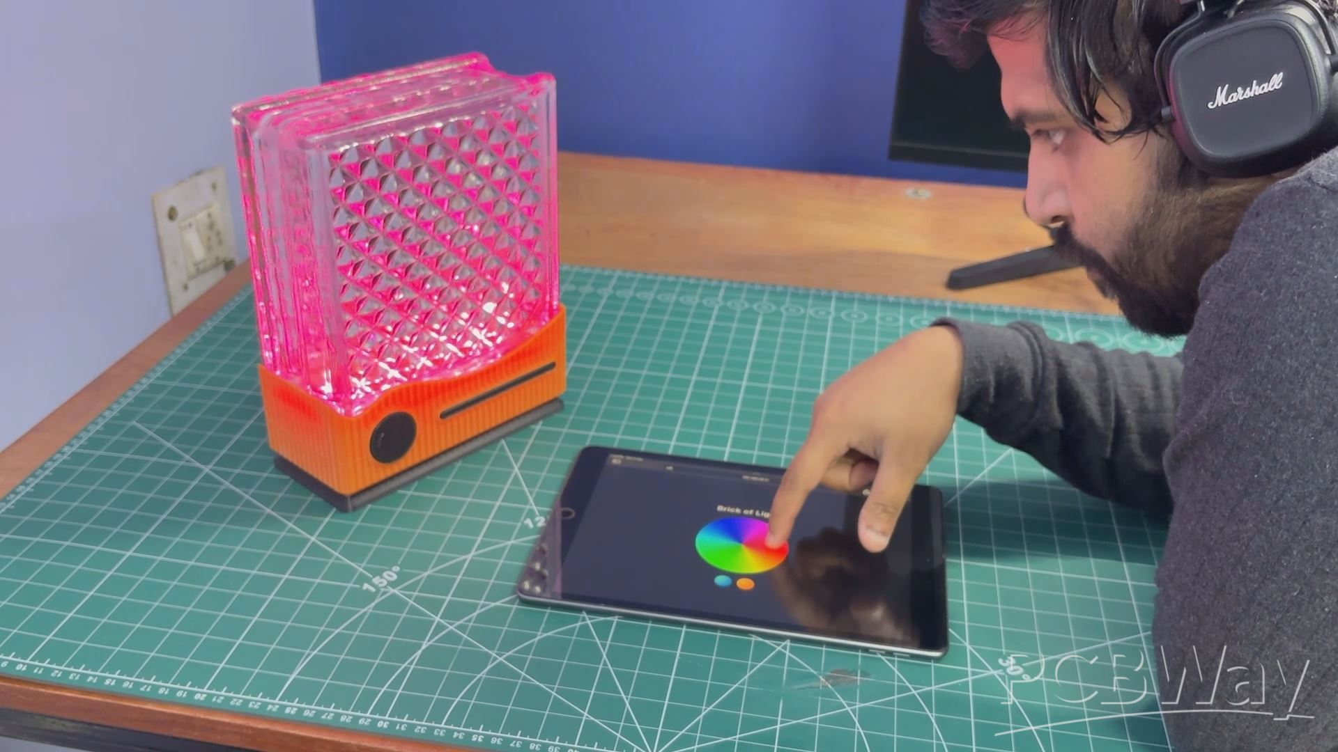 By placing an RGB LED PCB beneath the glass, the light shines upward and diffuses evenly through the entire block, transforming a solid glass brick into a soft, ambient light source that adds a subtle glow to the space.