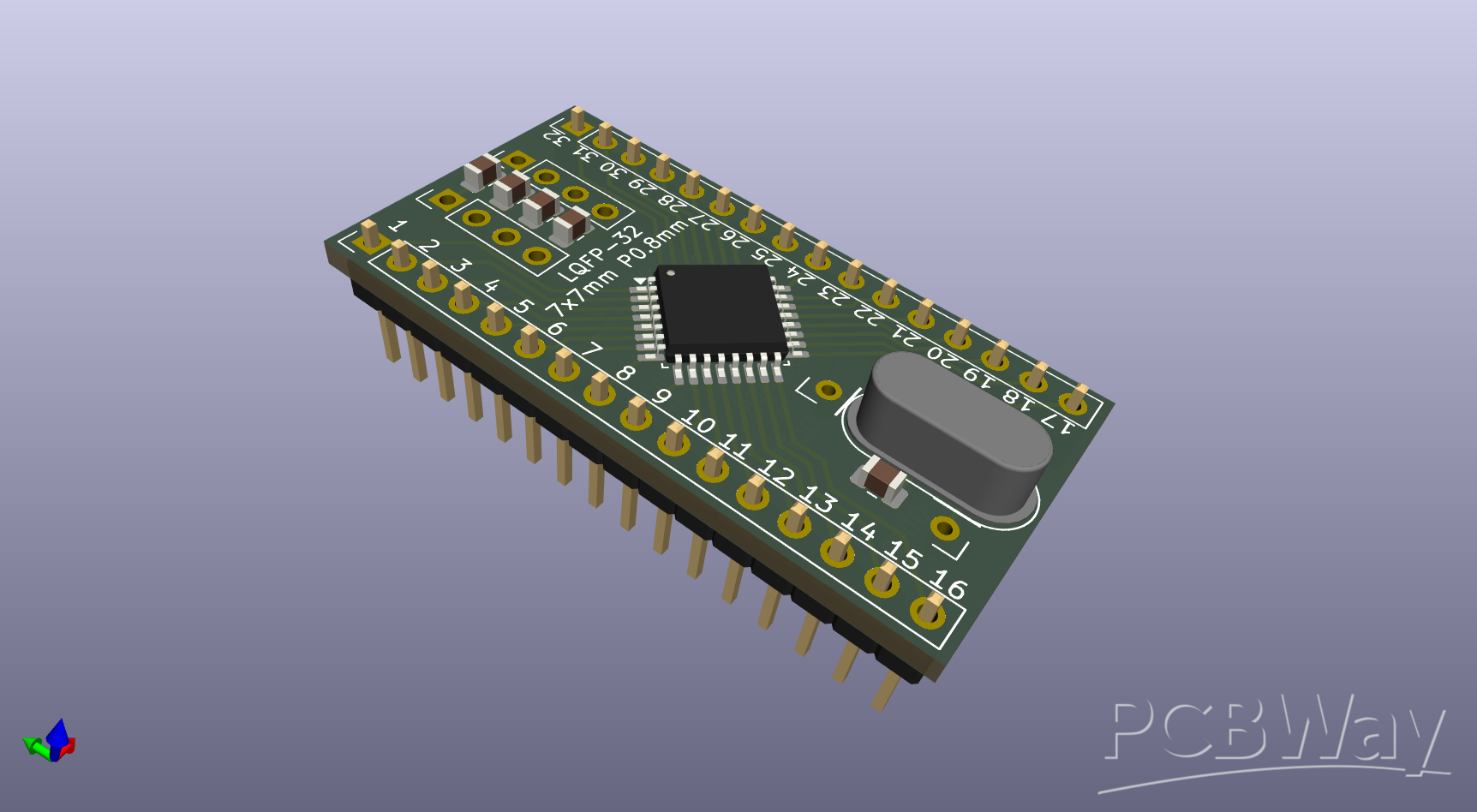 LQFP32 Breakout Board for easy breadboarding prototypeLQFP-32 7x7mm Pitch 0.8mmC = 0805Pin Header = ...