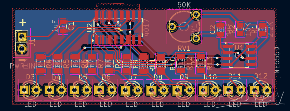 NE555 & CD4017 LED CHASER-The LEDS, RESISTORS AND INTEGRATED CIRCUITS are all SMD, therefore the...