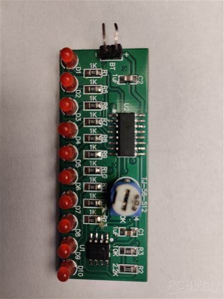 -The LEDS, RESISTORS AND INTEGRATED CIRCUITS are all SMD, therefore there are 3mm TH Leds, TH Potentiomer and TH 1*2 Pinheader.
