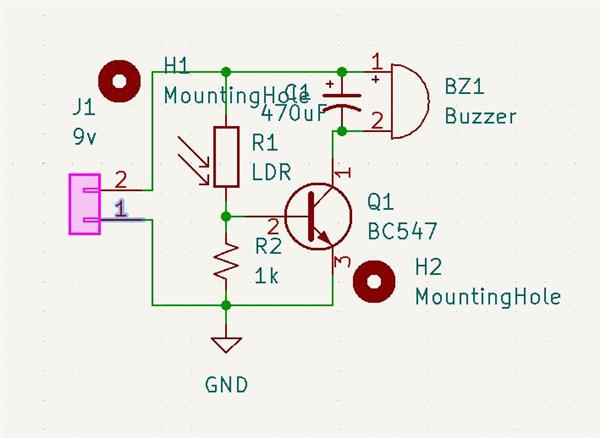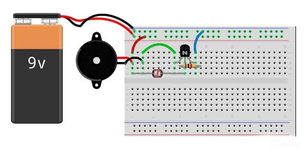 When the LDR is supplied with enough light its resistance is reduced. This outputs a high voltage which is supplied to the base of the transistor in the circuit and thus it gets biased hence turning ON. The turning on of the transistor activates the buzzer and it beeps, alarming the user.