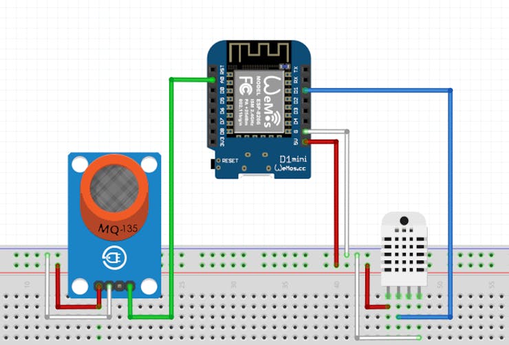 So firstly we will start with the hardware. below is the schematic diagram of the system which is showing how to connect the pins of sensors to We-Mos D1 Mini for Breaboard or Vero Board or you can buy the PCB from PCBWay Click Here.