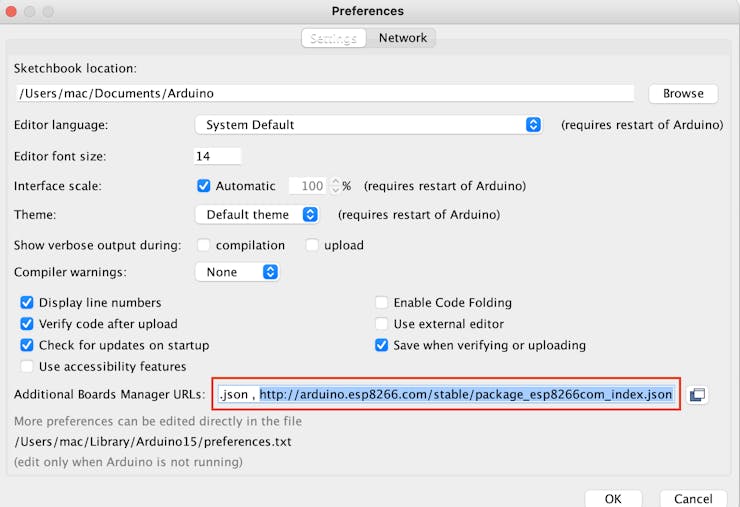 Now we are moving towards the Software Side. Firstly download the Arduino IDE from here if you didn't have. After installing the Arduino IDE Navigate to Preferences in Arduino IDE and add the below URL under 'Additional Boards Manager URLs'