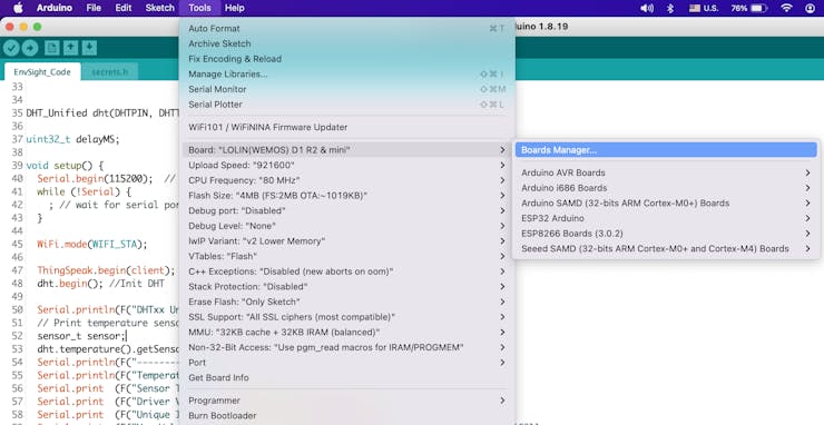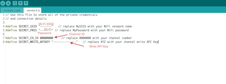 Download the code for Arduino from GitHub the URL is mentioned in the code section. here you need to update your secret.h file with Wi-Fi SSID,Password & ThingSpeak Channel ID & Write API Key.