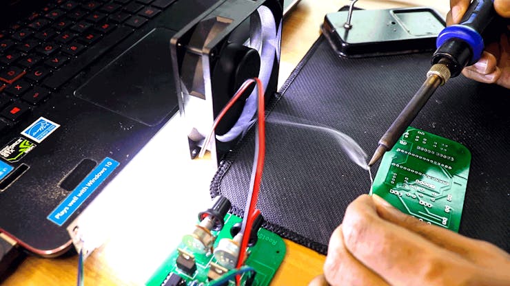 So, when soldering, it is very important to have enough light and a fume extractor to get rid of the smoke. By using a fume extractor, you and those around you will be safe from fumes that could be dangerous. In this video, we'll make a soldering fume extractor out of an old PC fan and a 12V LED strip that can be used to change the light.