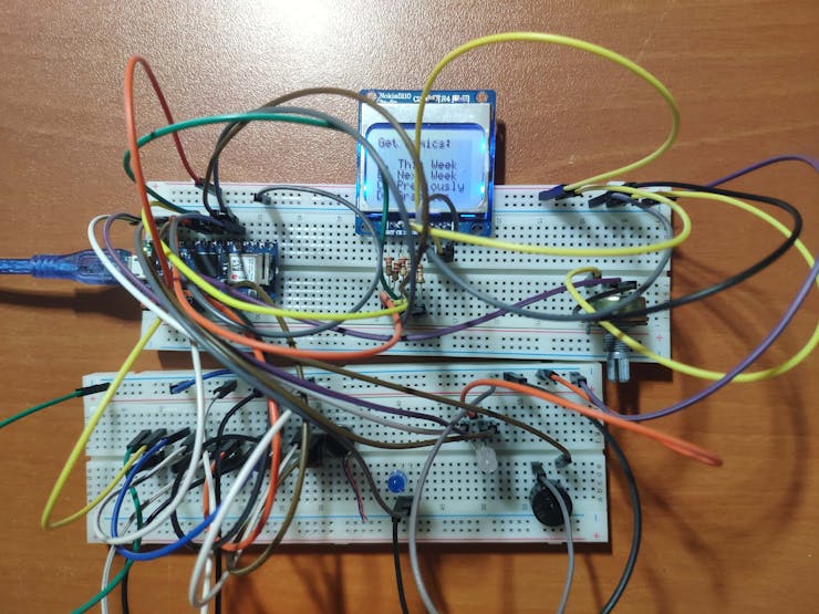 Then, I used an Arduino Nano 33 IoT to get comics release lists transferred by the PHP web application and display them with a Nokia 5110 Screen.