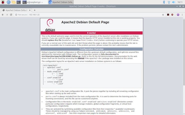 ? To test the server, open Chromium by selecting Internet > Chromium Web Browser from the menu and enter http://localhost.