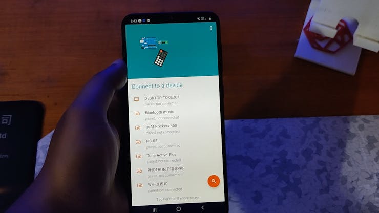 - then I opened a Bluetooth terminal app in my phone and connected the HC01 with it. as soon as it gets connected, The LED Stopped its frequent blinking sequence which is a sign that the module is now connected with the device.