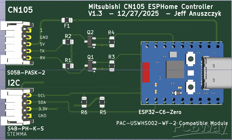 Mitsubishi ESPHome CN105 Microcontroller - PAC-USWHS002-WF-1 plug compatible
