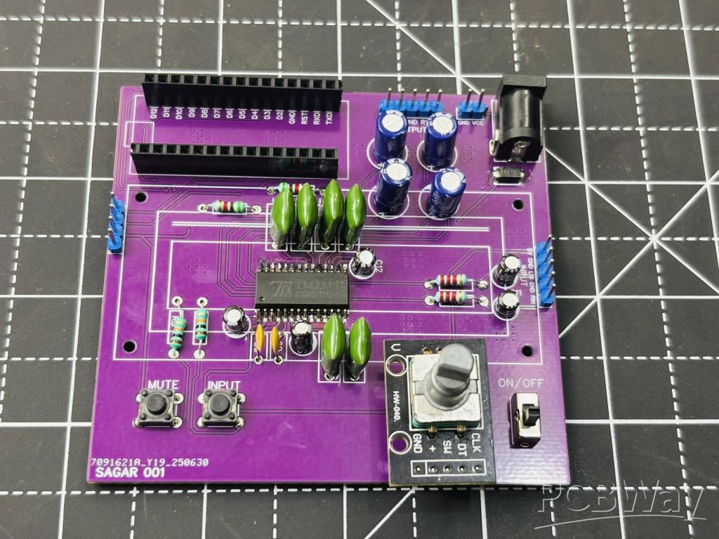 I tested the system for all aspects like noise analysis, channels working, gain and signal part. Everything is working very fine, the switching between different screens and selection is quite smooth. Arduino can handle it well. I have a small design tip, use a polyester film capacitor for the external DSP parts. They are not much noise sensitive and work well with high frequencies. The power can be supplied through a 12V jack after plugging everything in place. Now because I am testing this in raw conditions I have a small amplifier and stereo speaker system for analysis. It is obvious that it is only to test the operation of the board. See the attached video for review and consider PCBWAY if you want this PCB.