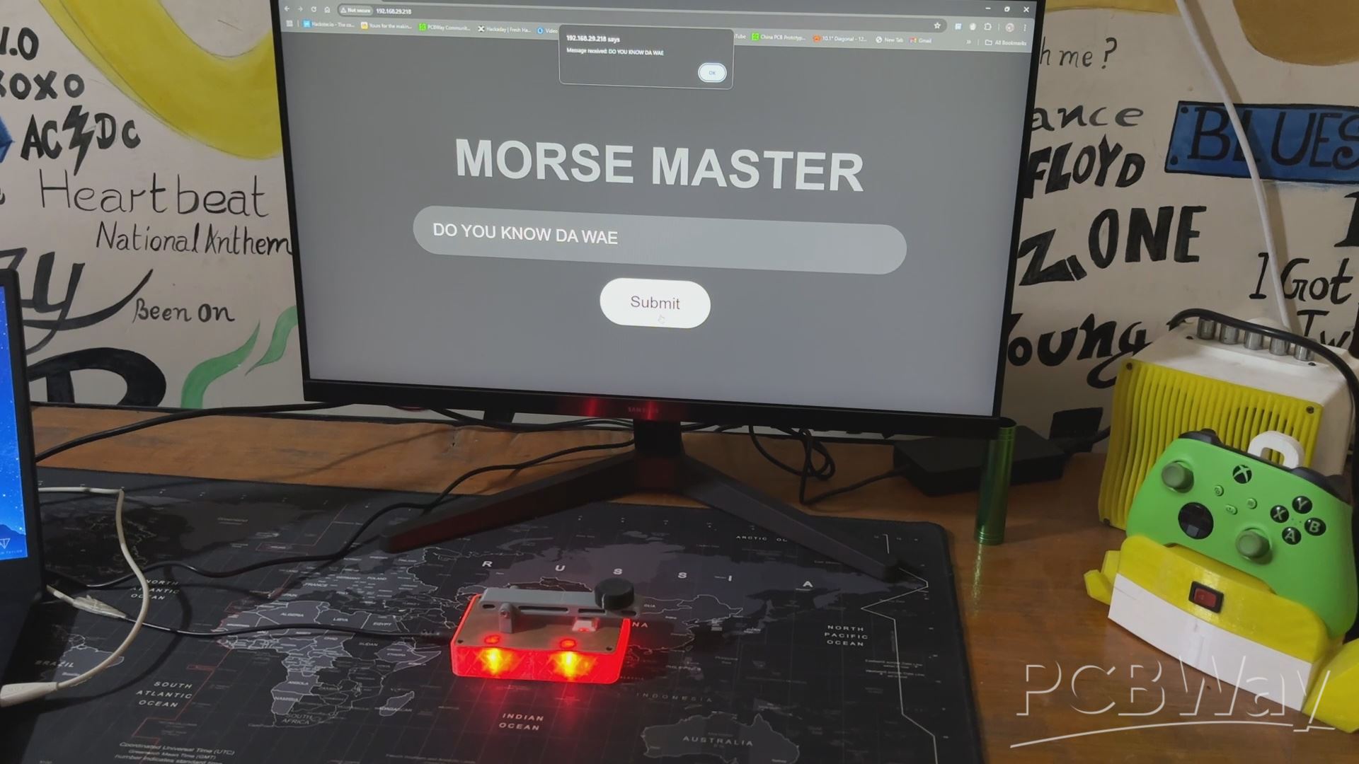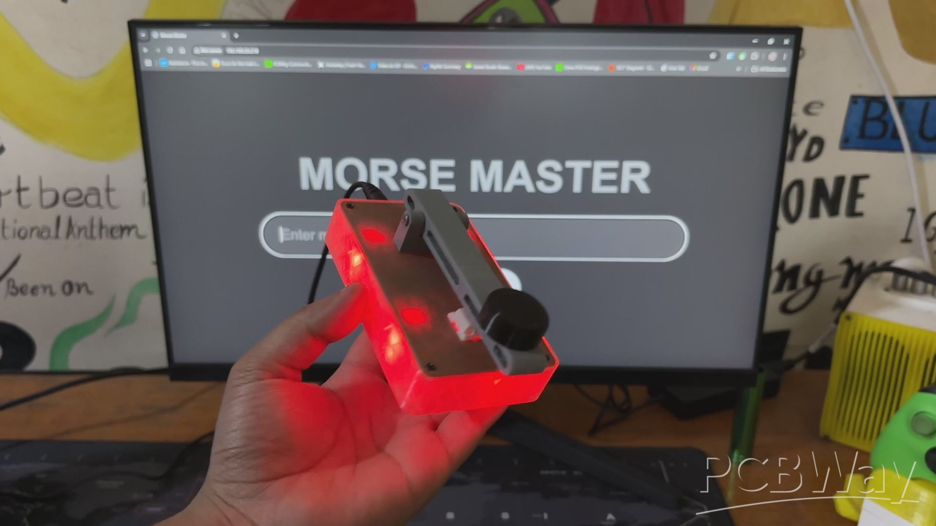 Meet Morse Master, a Morse Code translator that can be controlled with a sleek web app or a tactile push button. The Morse Master goes beyond utility by combining interactive LED displays, Wi-Fi connectivity, and manual input choices in a single attractive design.