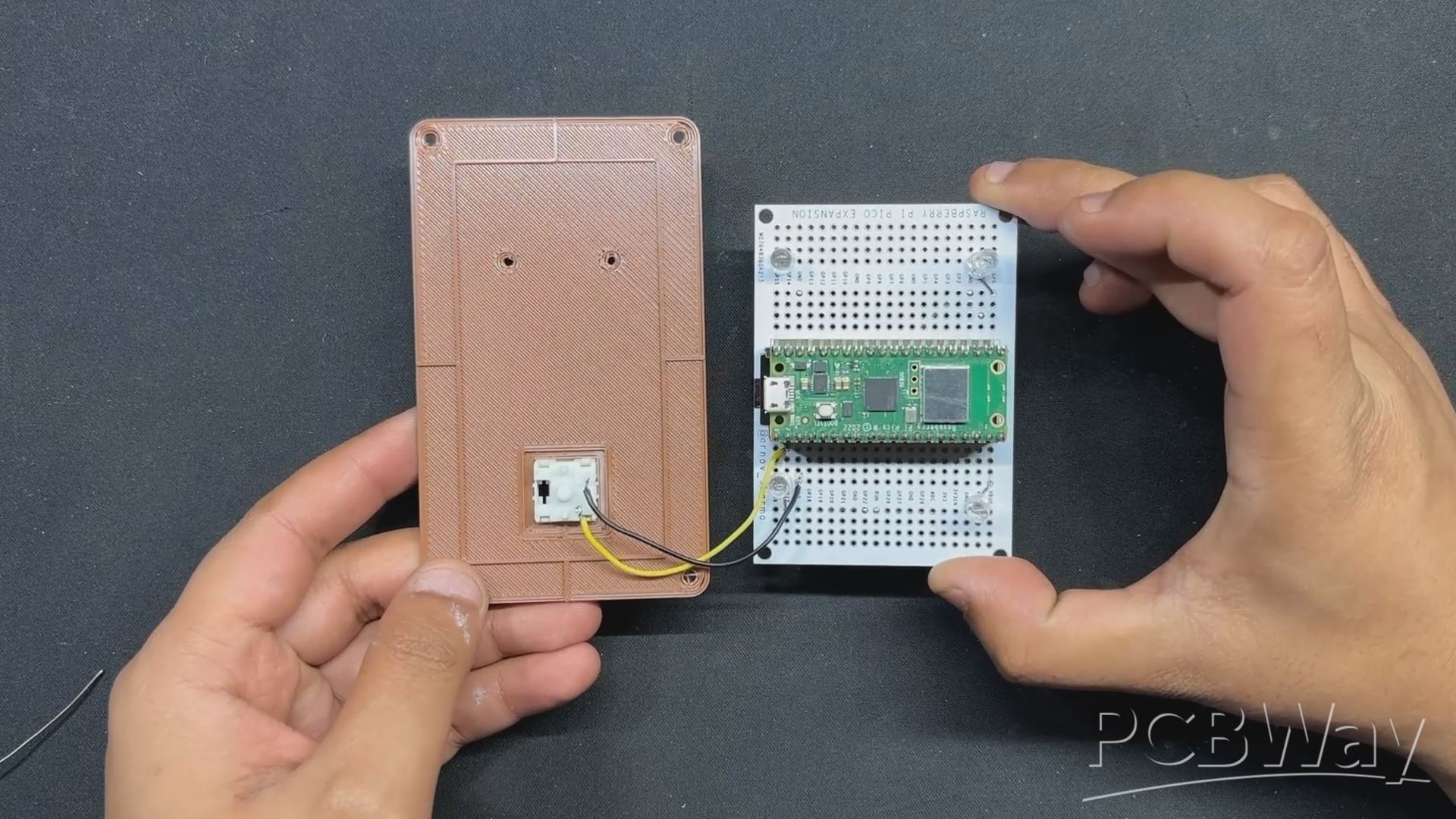 - The PICO W Circuit is then installed within the Main body, over four screw bosses, and tightened with four M2 screws.