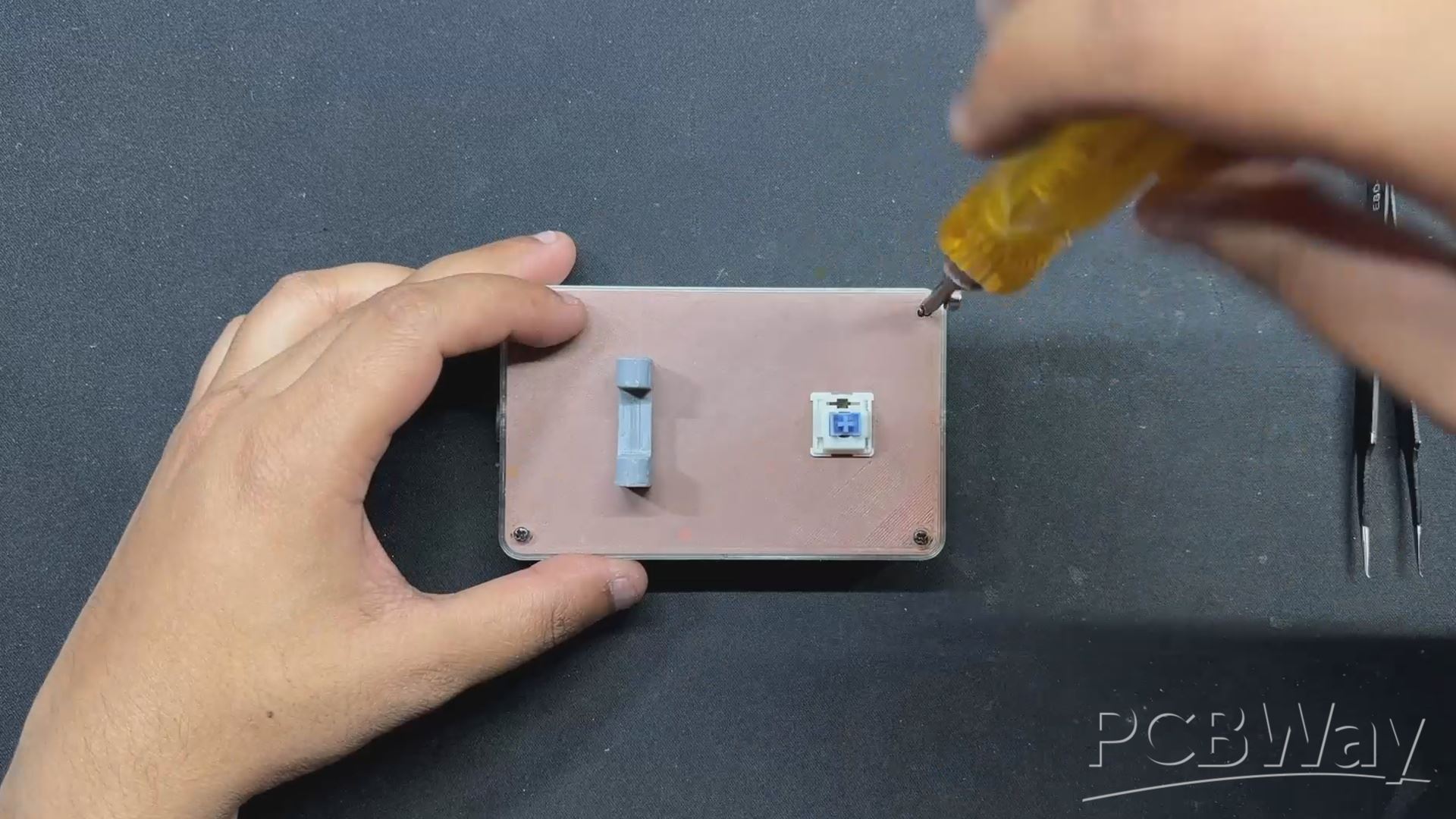 - We place the mechanical switch in its slot on the lid section, pushing it downwards to secure it in place.