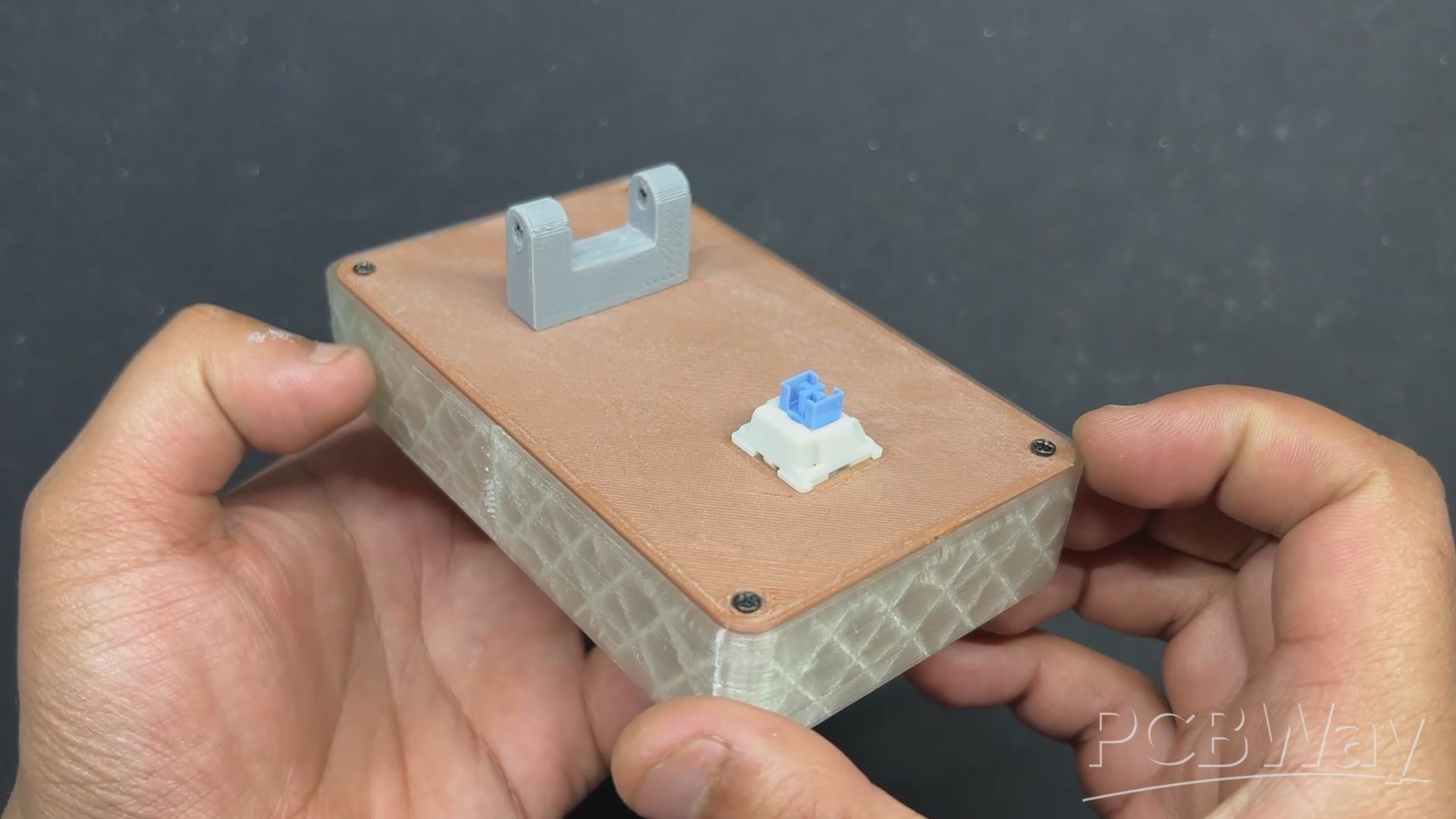 To hold the mechanical switch in place, we built a square opening in the lid; the mechanical switch slides into this slot and is kept in place with two locks on its body. These two locks enabled us to securely hold the switch in place on the lid section.