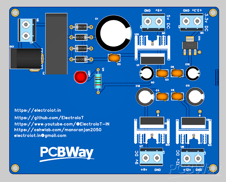 This design is perfect for powering various devices like Arduino, Raspberry Pi, and other embedded systems that require different operating voltages.
