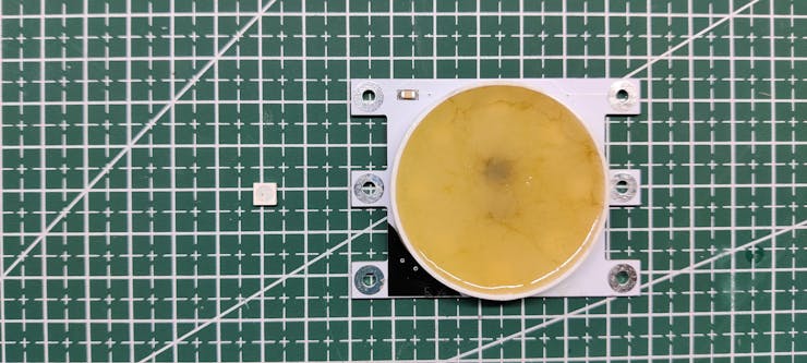 After a few hours, the epoxy will have cured, and we will have a huge Neopixel at our disposal.