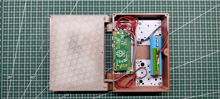 - The lithium cell is then secured in place with hot glue, and the lid is then attached to the lower body using four M2 screws.