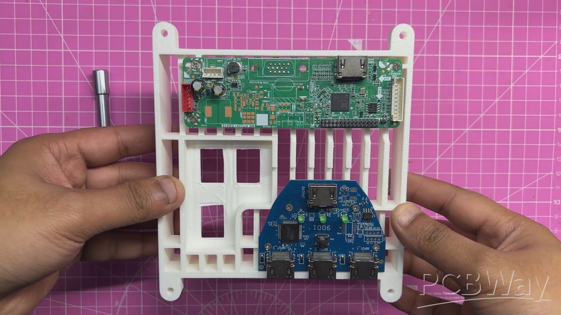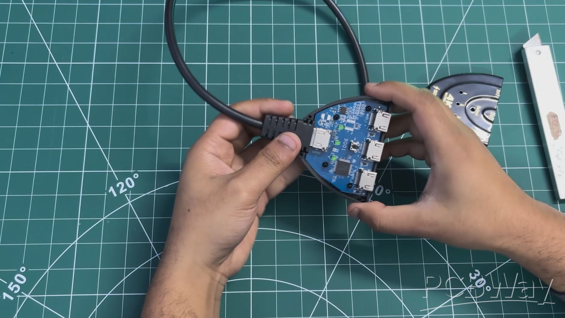 Our goal was to use a single LED display panel as the main display while running two SMPS units. Since only one SBC can drive the display at a time, an HDMI splitter became the obvious solution. We used a three-input, one-output HDMI splitter from Sounce. Opening it up was straightforward—the enclosure doesn’t use screws and is instead held together with snap locks. Using a prying tool, we were able to open the casing and access the circuit inside.