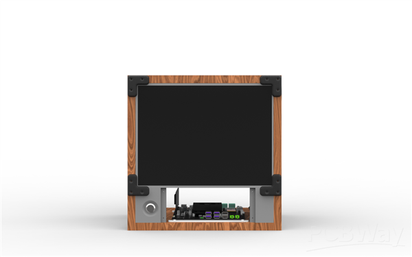 In the updated model, the old display was removed and replaced with a new LED panel. The new screen is slightly smaller and significantly thinner than the previous LCD monitor, which required changes to the overall size of the wooden frame and panels. Along with this, the display holder and the front screen mount were also redesigned.