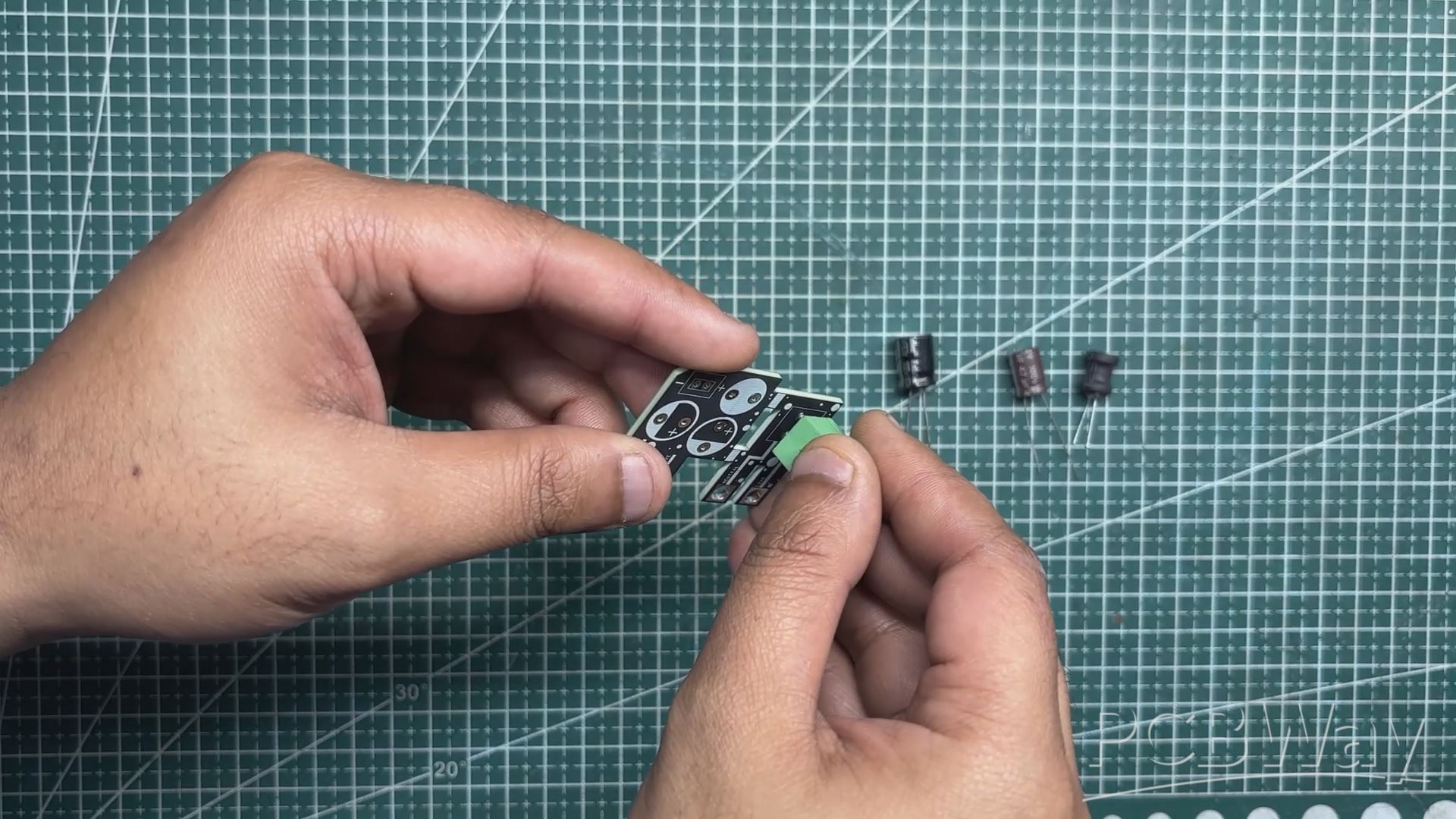 Next, the input-side capacitor was installed, followed by the output capacitor.