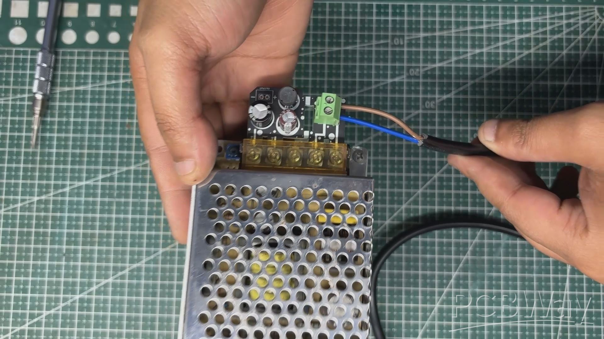 For getting power from the LC filter circuit, we used a simple makeshift solution. A bare filter circuit PCB was mounted on the side panel near the SMPS using wood screws. The 12 V and GND outputs from the LC filter were routed to this bare PCB, effectively turning it into a small power distribution board. This allowed us to easily solder additional loads and kept the wiring process simple and organized.