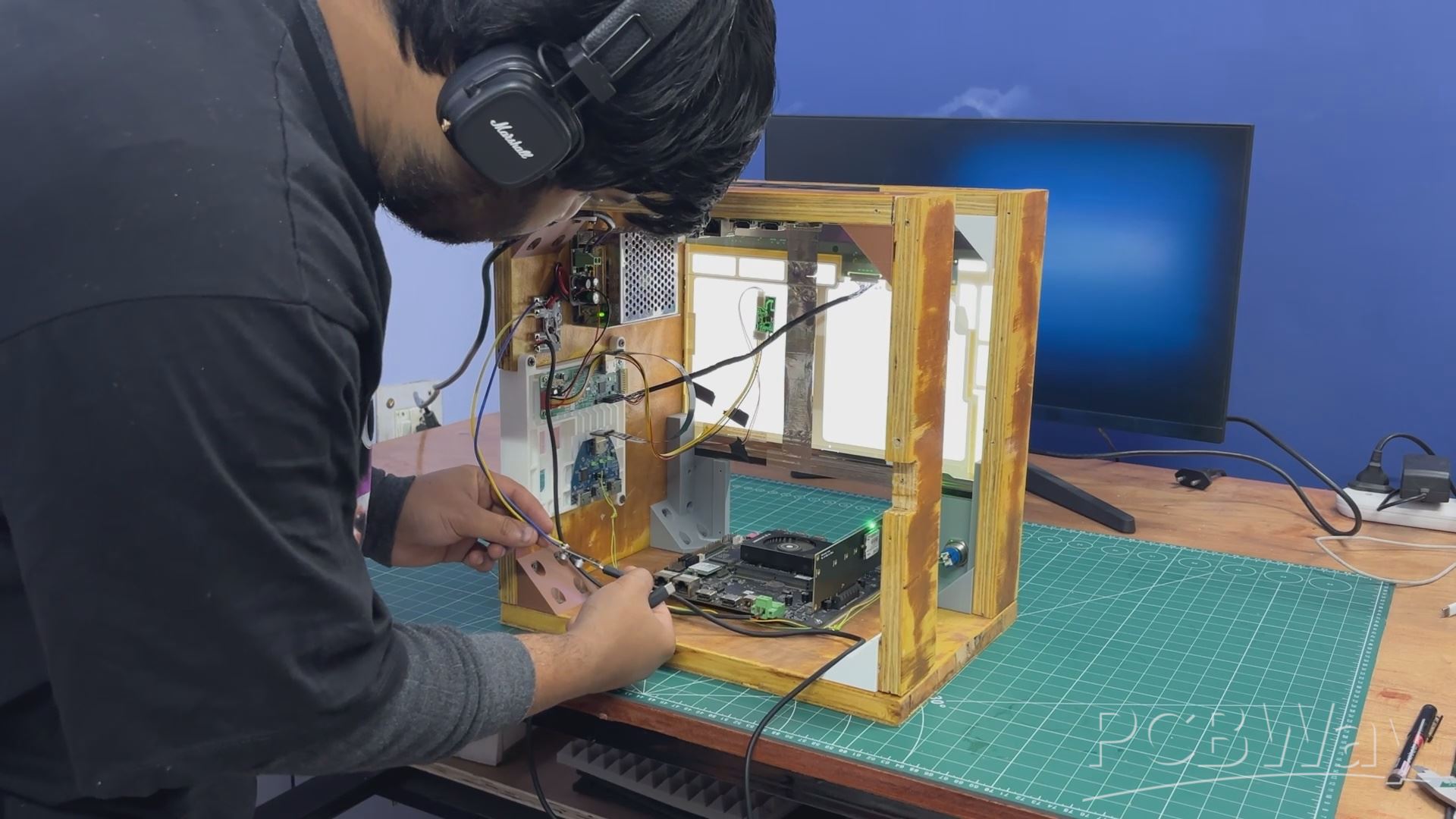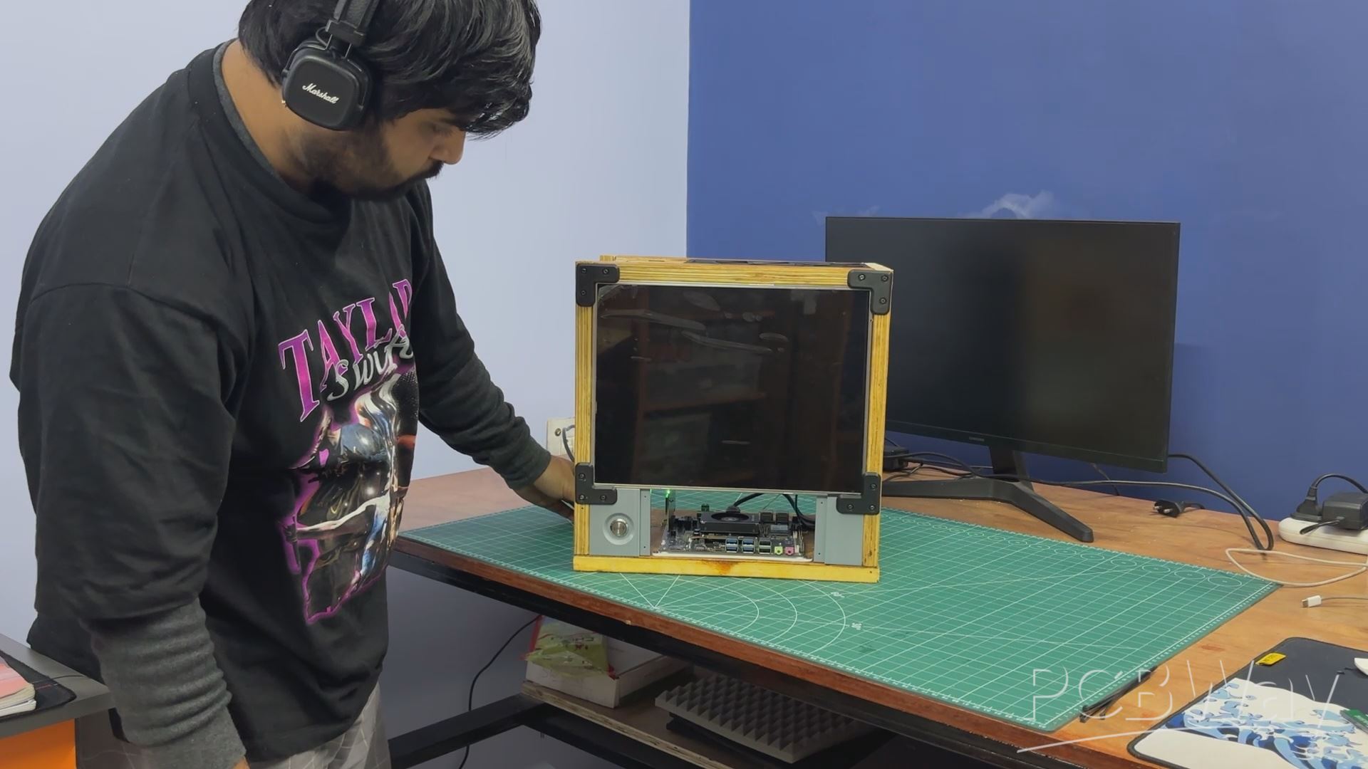 We stripped down a low-cost monitor and reused its TFT panel for this project. The monitor’s HDMI driver board was retained, but its original power supply was intentionally omitted. Instead, the display is powered by the same SMPS used for the other internal components. This approach helped reduce the overall size of the wooden frame, making the final build more compact.