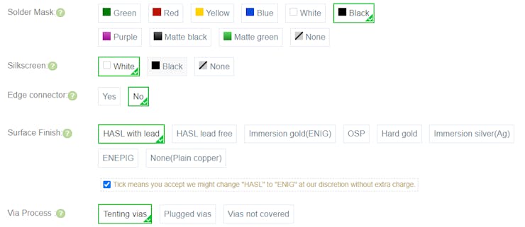 I go with black color 1.6mm aluminum material, ENIG finishing option. Because I want to assemble more boards on a run so I enlarged the size to 120mm. If you want to use same designs as mine then download the Gerber files from here and get the amazing PCB prototype service from PCBWay.