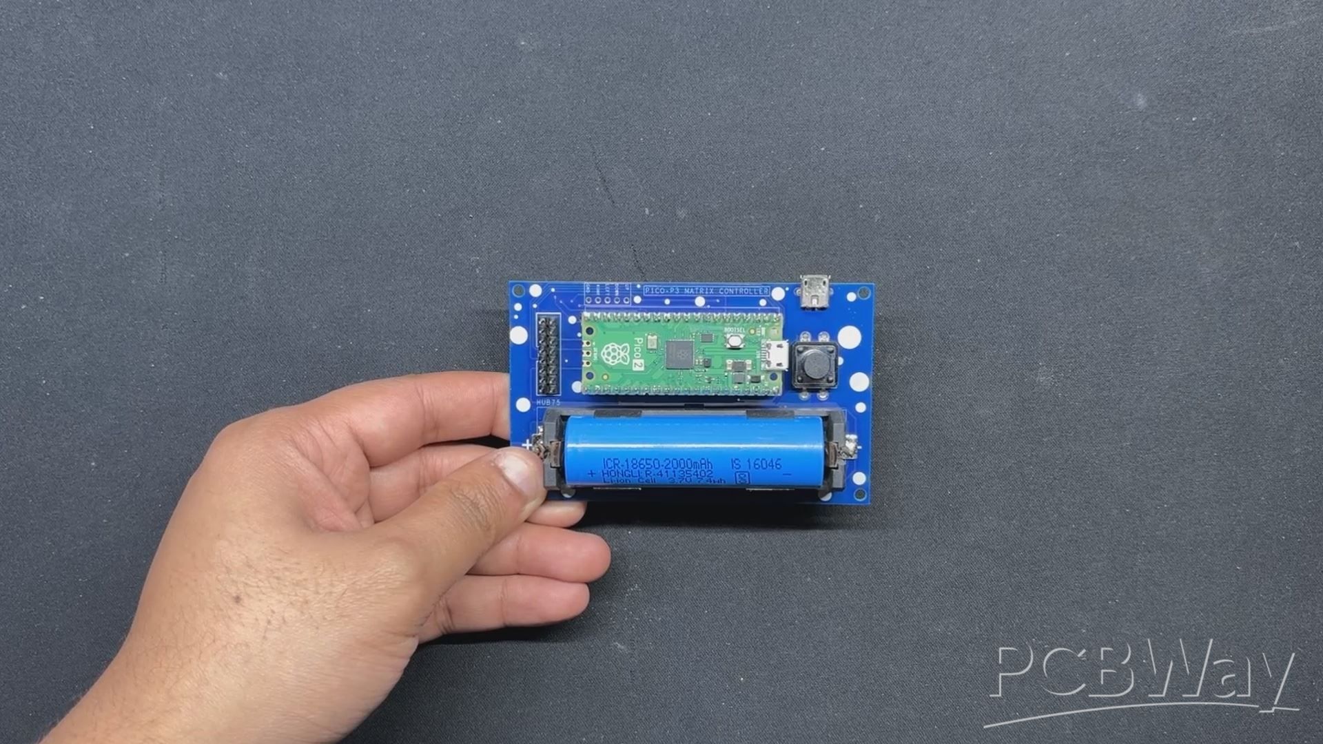 The main component of our console is the PICO Driver Board, which is essentially a breakout board for the PICO that allows us to connect an RGB matrix's HUB75 connector to the PICO. It also has a 3.7V Lithium Cell Power Management circuit, which ensures that the PICO and RGB matrix work at a consistent 5V.