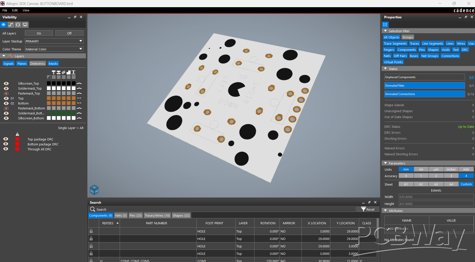 We made two PCBs for this project: the button board and the PICO driver board. Two orders were made: one for the button board and one for the PICO driver board.