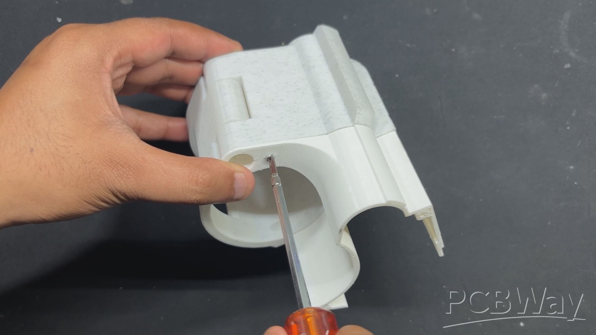 - The extension part is then positioned over one side of the main body, its mounting hole is aligned with the main body, and an M2 screw is used to fasten them together.