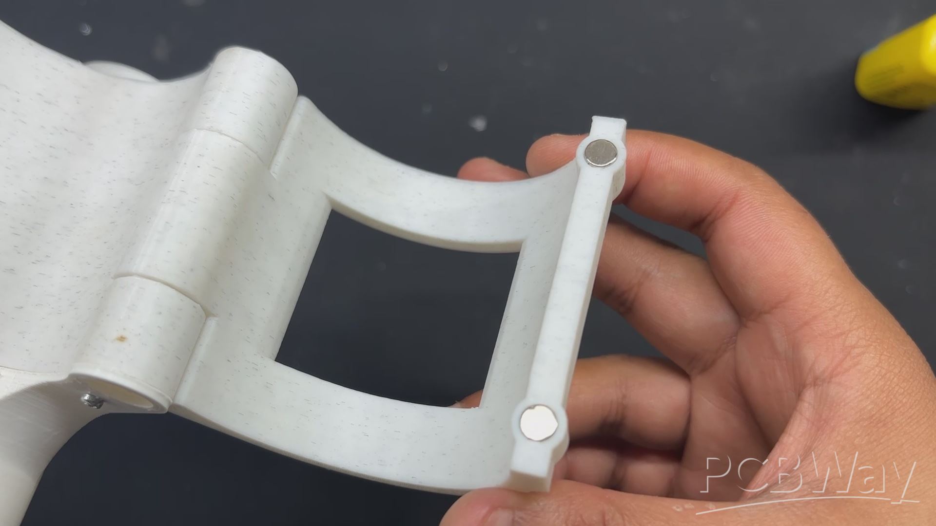 - Similar to this, we add magnets to the main body by following the same process, but we make sure to face them in the correct direction since this section employs two magnets to create a magnetic lock, and magnetism is crucial in this situation; utilizing the same poles on the same side will break the entire system.