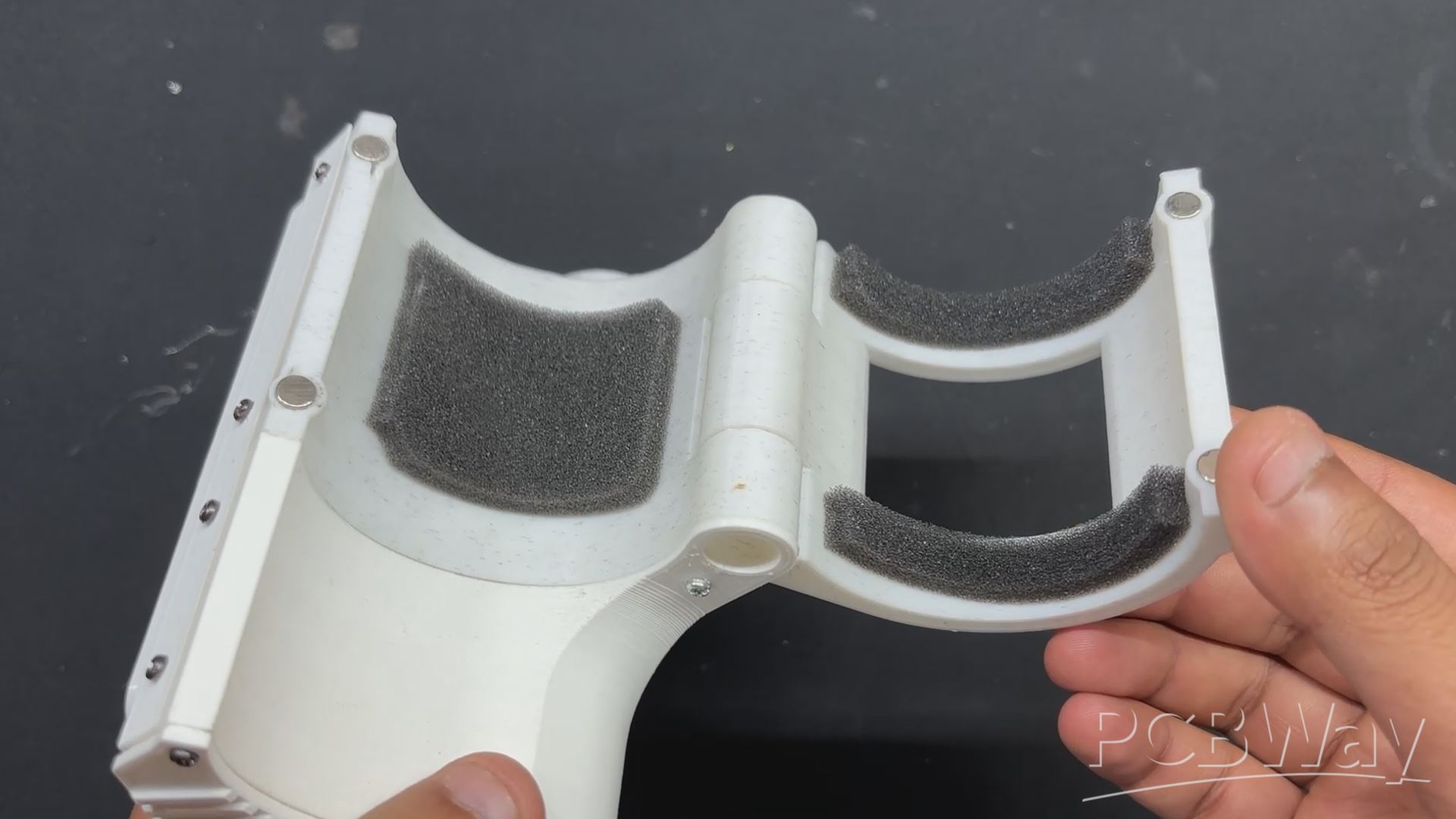 - We completed the assembly process by first applying two long foam cutout pieces to the clamp part using hot glue, followed by the addition of a rectangular foam piece to the main body.