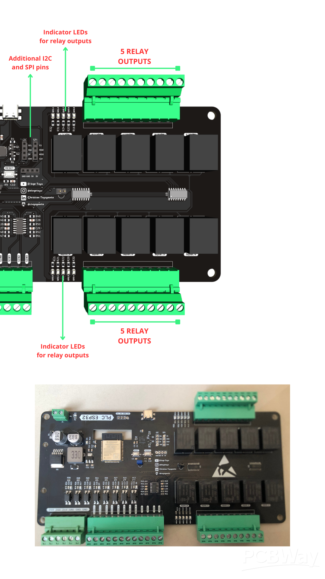 PLC ESP32 DC/DC/RLY || 8 DIGITAL INPUT + 4 ANALOG INPUT + 10 RELAY OUTPUT.