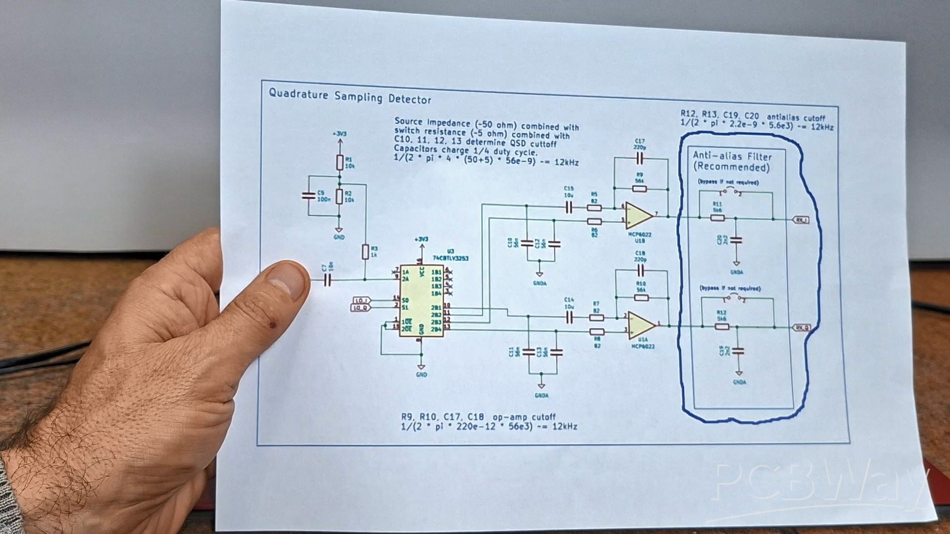 - The addition of another low-pass filter between the opamp and the microcontroller which consists of two resistors and two capacitors. This allows for a significant improvement in alias rejection.