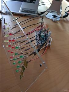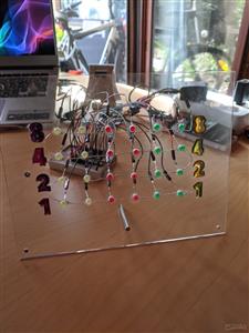 The slightly different watch for smart people. The time is displayed in the binary system and you have to calculate the time information a bit. From right to left: The first row shows the seconds in units, i.e. 1, 2, 4, 8. So five seconds are LED 4 and LED 1 are lit. The next column shows the tens values, i.e. 10, 20, 40 and so, for example, the 2nd LED in the first column from the right and the 10 LED in the second column result in 12 seconds. This is followed by the columns for the minutes, tens of minutes and hours, and tens of hours and so on. The challenge is to get the time because the Pico has a sensor for temperature but cannot control the time or remember it. The solution is an RTC module. So if you enjoy a slightly different and special watch, you will have fun recreating and refining this project. The LED binary clock is an eye-catcher! The project is also cheap. It cost me about 20 euros and some time. It is certainly also suitable for teaching to understand binary and programming.
