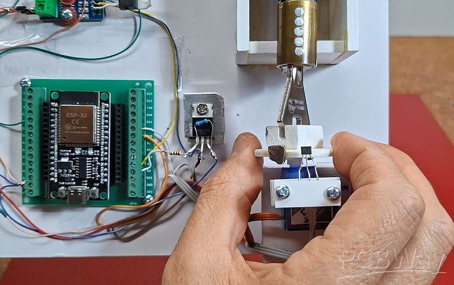 Next comes the most interesting part, and that is how this device behaves in approximately real conditions. I say approximately because what is missing here is the locking/unlocking mechanism that is mounted inside the door. However, today's locks are very precisely made so that only a little more force is needed to move that mechanism. Also, let's not forget that the final product would use a servo that is many times stronger and of higher quality than this $1 servo.