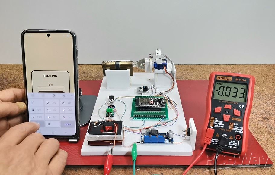 The test prototype contains a real mechanical lock with standard dimensions. During the development, I gradually solved the problems one by one. I decided to use standard components that are easily available on the market and are relatively inexpensive.