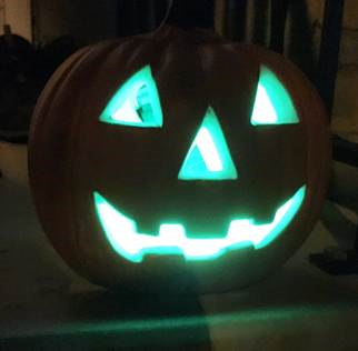 This light for a pumpkin or Jack o'lantern operates on a single 9-volt battery and cycles through fi...