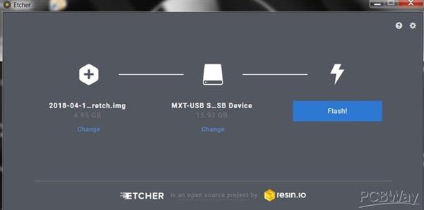 - Open Etcher and select from your hard drive the Raspberry Pi .img or .zip file you wish to write to the SD card.