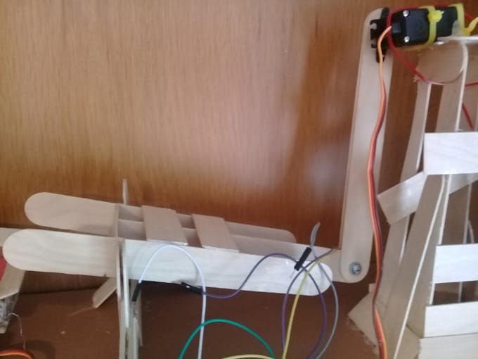 With the popsicles sticks build the arm according to the photo, or I wish easily better than this one.
